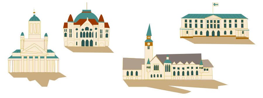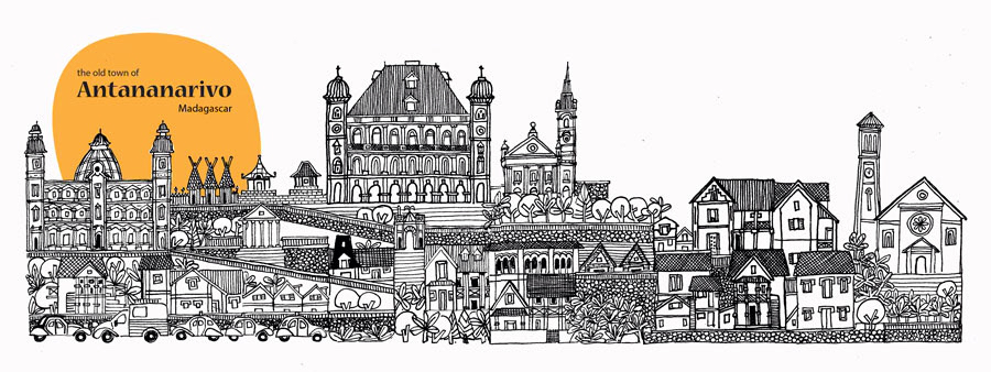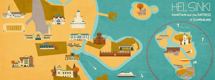 Map art illustrations for They Draw and Travel. Illustrations of favorite places and buildings.