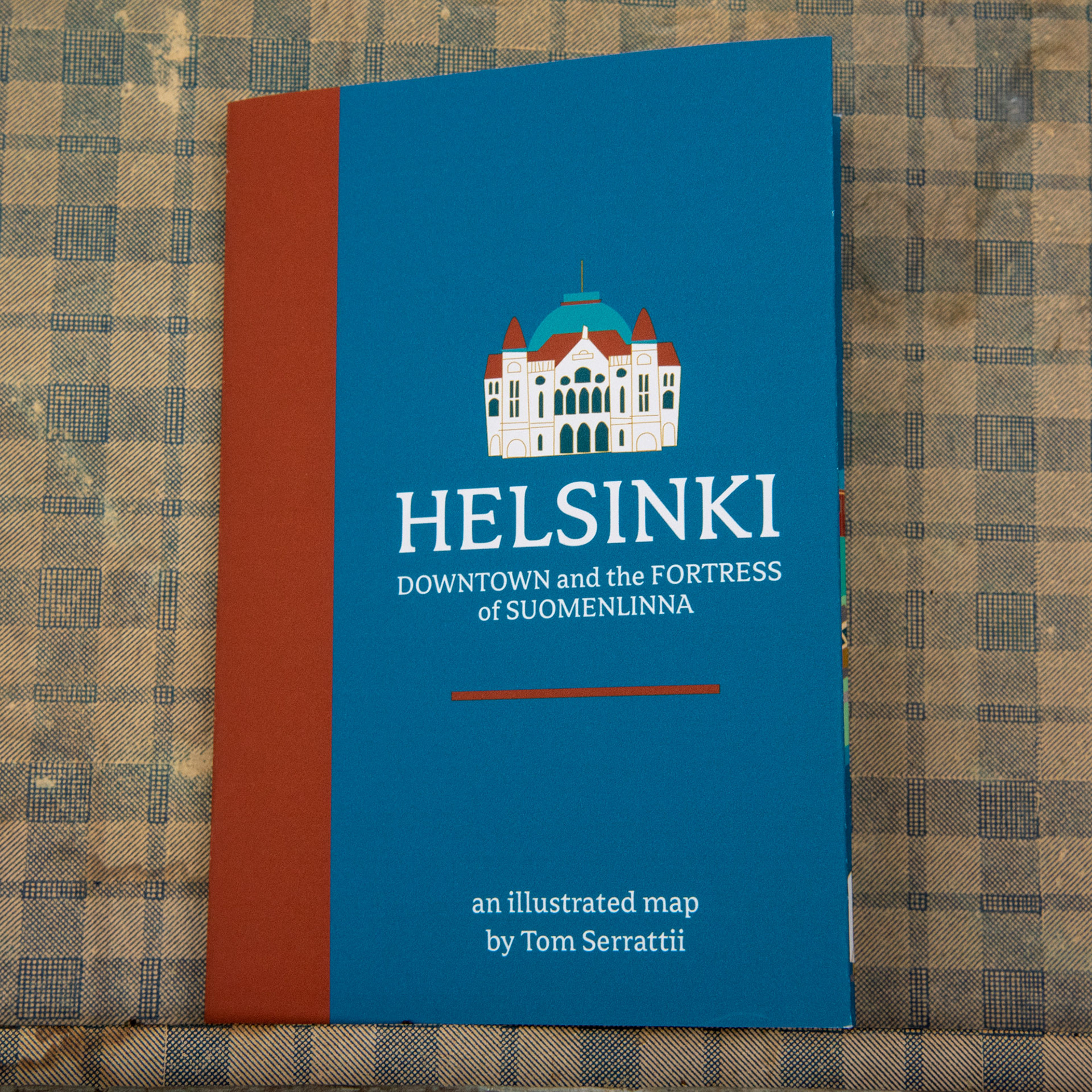 Illustrated map of Helsinki, folded into a 10x15 cm concertina book. Copies can be purchased at https://www.etsy.com/listing/700274050/illustrated-map-of-helsinki?ref=shop_home_active_2